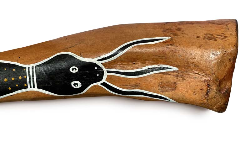 イリチャ半族のライトニング・スネイク「Burruttji / Mandukul」が描かれたショート・ファストMandapul(イダキ)。現地の若いイダキ奏者たちが好きそうなラフでアグレッシヴなテイストが光る。[Used扱い] |