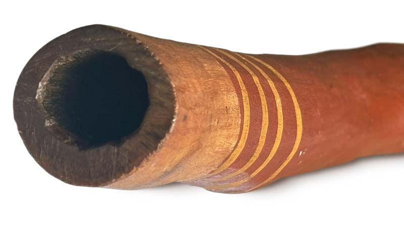 オープンな空洞で細くて長い昔風のイダキのルックスにボトルネックにシェイプされたマウスピース周辺の持ち手。スーパーソフトな振動で限界までおおらかでフルオープンな演奏感が衝撃的なクラシカルなDatjirri#1作のイダキ。