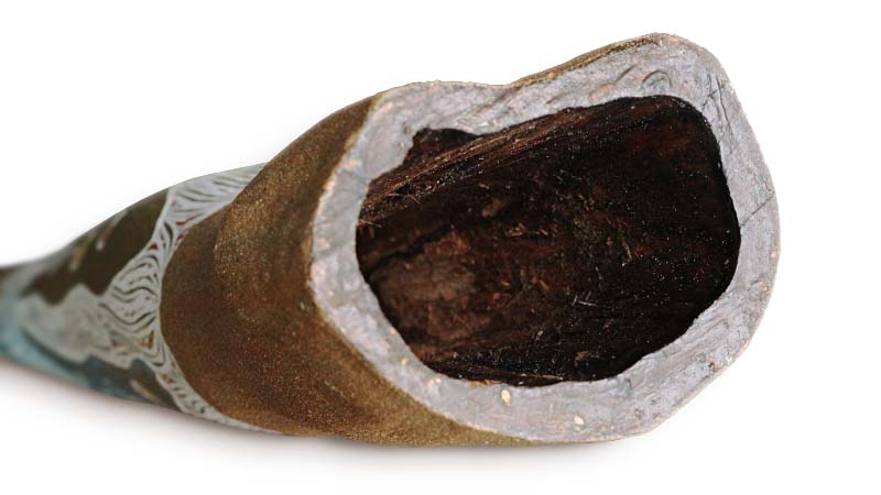 ギリギリまで削って軽くて、美しいシェイプ。ヨォルングの若者が儀式で使うのに好みそうなオープンな空洞で大きめのマウスピースでガチなハードタングなMandapul(イダキ)。 |